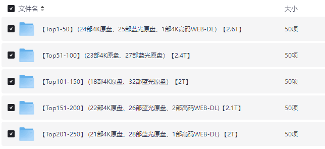 - 【豆瓣电影TOP250】榜单合集【11.1T】 【4K&蓝光原盘REMUX】【杜比视界&杜比&次世代&国英日韩多音轨】简繁英双语特效多字幕 榜单更新时间 2025-06-05