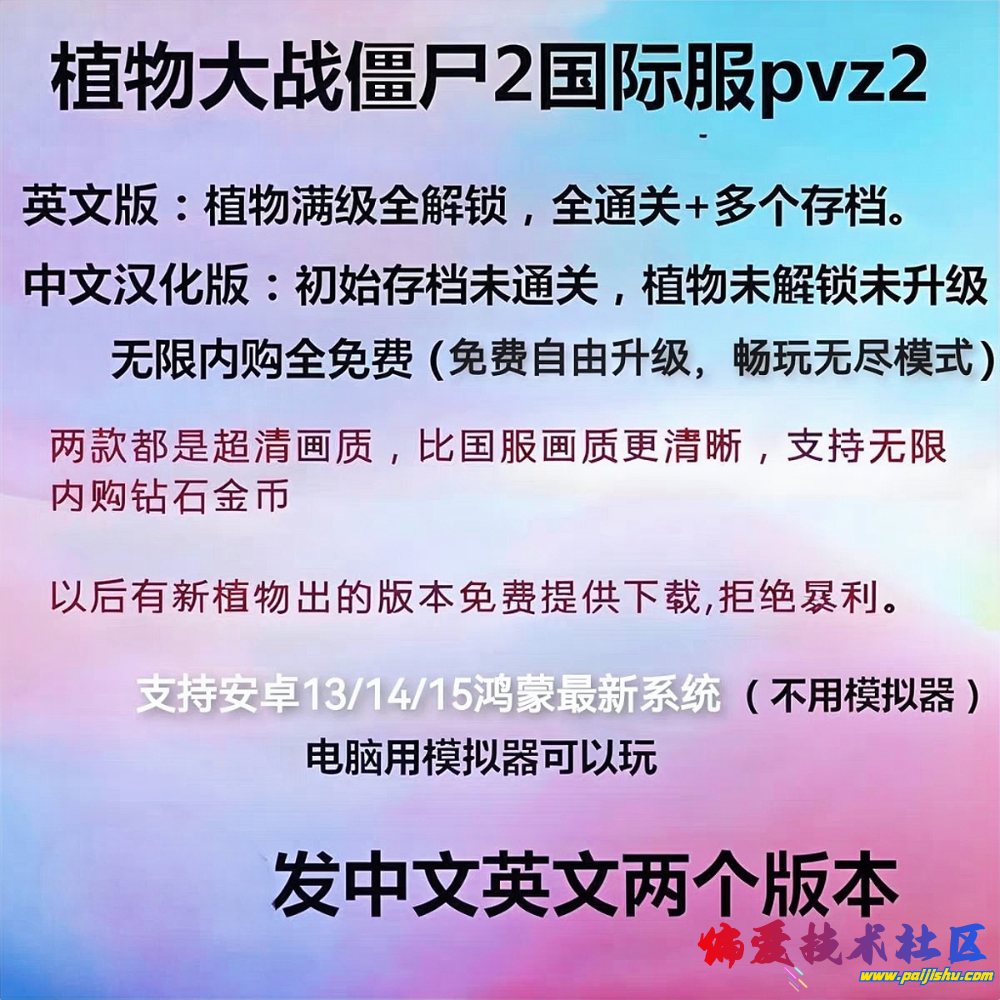 - 【手机端+PC模拟器】植物大战僵尸2国际服内购版V12.1.1 无限金币钻石【1.7G】