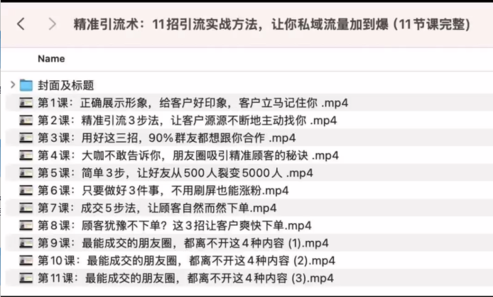 - 《精准引流术:11招引流实战方法,让你私域流量加到爆(11节课完整)》【1.5G】