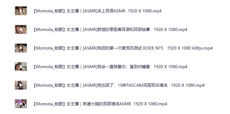 - 《日本ASMR美女主播【Momota】角色扮演4》自费购买 可爱女友扮演各种角色哄睡助眠高清合集 持续更新 [MP4][2.3G]