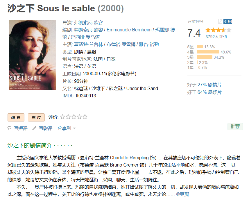 - ❤️【法式心理悬疑佳作】沙之下【2000】BD1080P [外挂中文字幕] [7.9G]