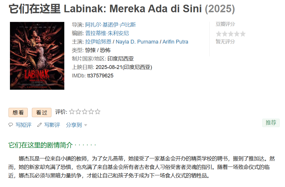 ❤️【新上线印尼惊悚恐怖片】它们在这里【2025】BD1080P [中文字幕] [3.8G]