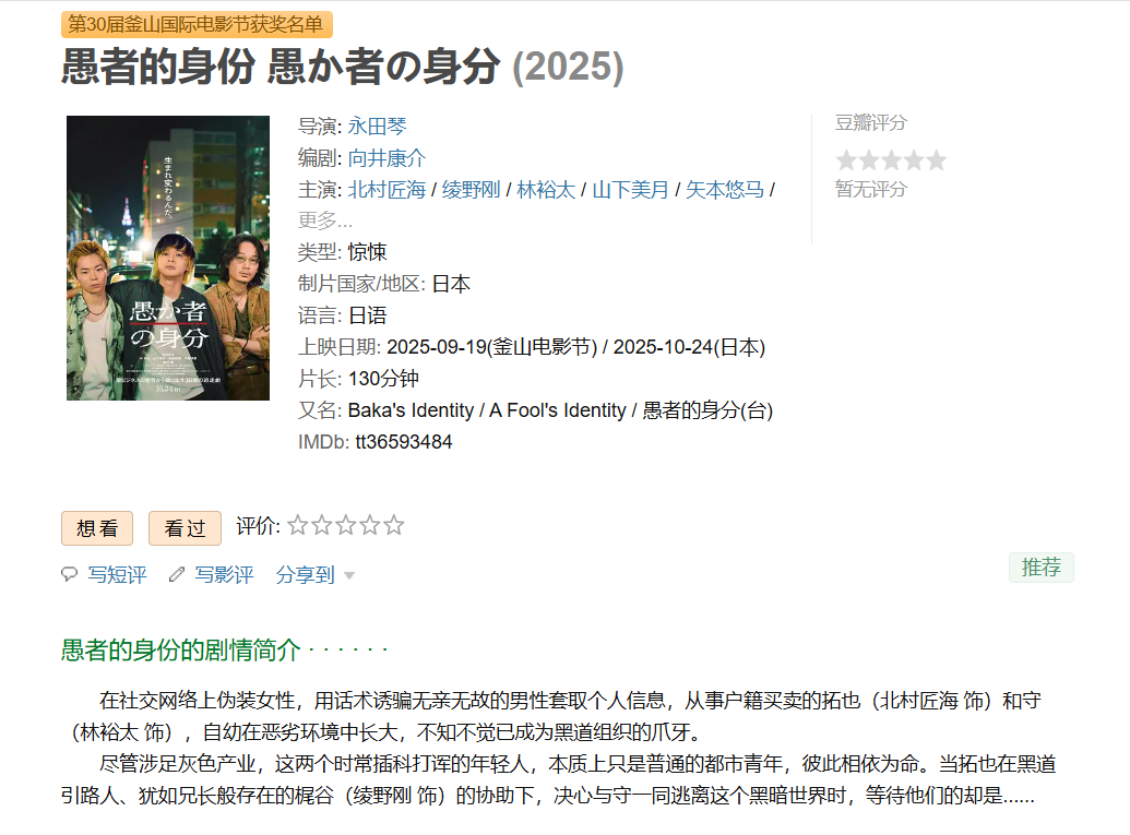 ❤️【新上线岛国逃亡题材惊悚片】愚者的身份【2025】BD1080P [中日字幕] [2.9G]