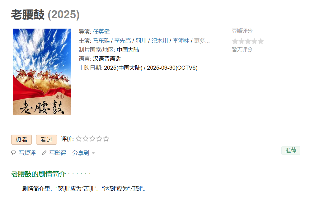 - ❤️【陕西非遗文化题材电影】老腰鼓 (CCTV6版)【2025】HDTV1080P [国语中字] [5G]