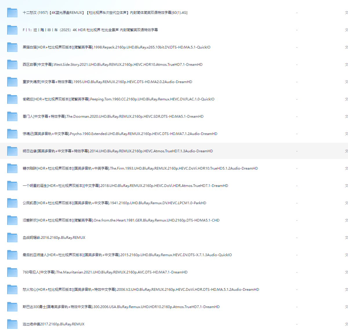 - 全4K+UHD蓝光原盘+REMUX典藏版电影合集【内封中文字幕】【共288部】单部58G/共16.2T