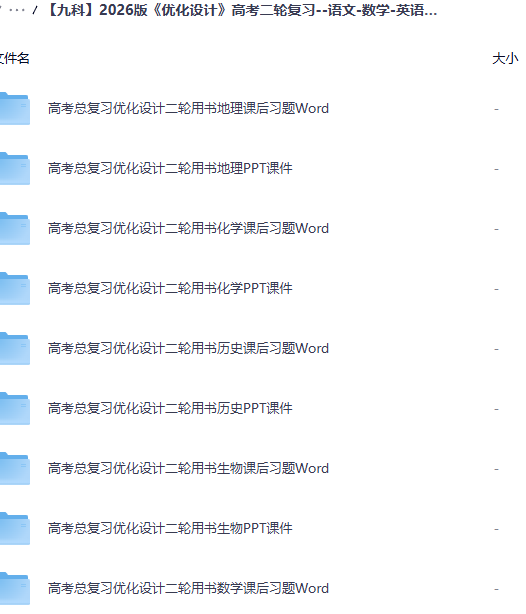 - 【九科】2026版《优化设计》高考二轮复习--语文-数学-英语-物理-化学-生物-历史-地理-政治 (讲义word+课件ppt)
